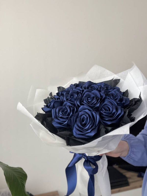 Ons Eeuwig Boeket, handgemaakt van luxe satijnen lint, verwelkt nooit en blijft altijd stralen. Een prachtig en duurzaam alternatief voor verse bloemen!